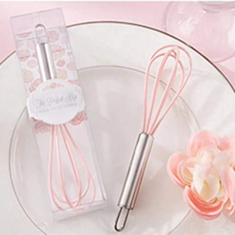- Batedor de aço inoxidável com revestimento de silicone rosa.